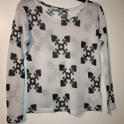 Vähän käytetty, hyvä kunto. Napillinen ohut neulepusero leo täplillä, tumman harmaa.