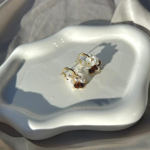 Käsintehdyt korvakorut kukilla. Saatavilla sekä hopeisena että kultaisena.