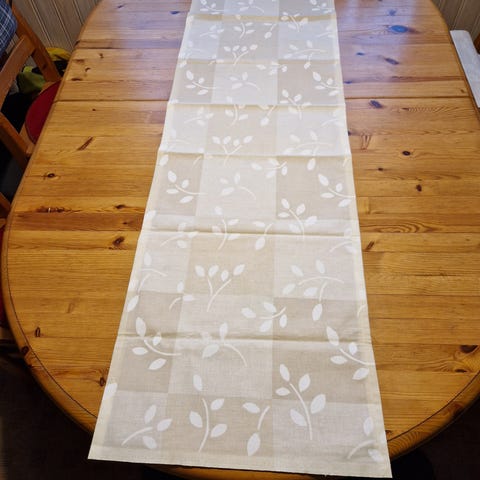 Puuvilla kaitaliina, sydän kuviot päädyssä.