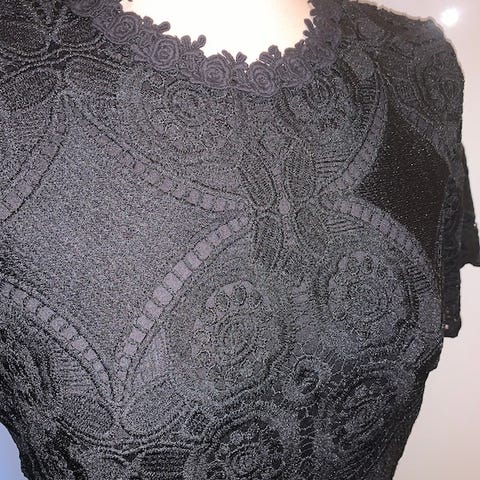 Myydään Virasmi VILA musta mekko, kaunis kukallinen pitsi, koko M. Koristeellinen ja yksityiskohtainen pitsimekko on pääntieltään pyöreä ja takakappaleen pääntiessä on napillinen halkio. Vuorattu. Käytetty vain kerran. Erittäin hyväkuntoinen ja siisti. Mitat venyttämättä: kainalo-kainalo: 49cm, keskiselän pituus: 98cm