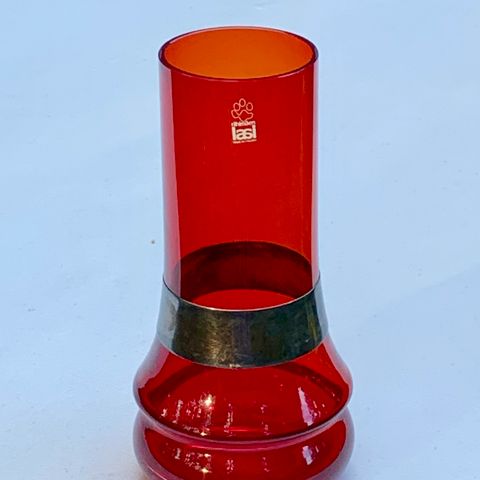 Riihimäen jalallinen tarjoiluprikka etsatuin koristein, 1930-luvulta, suupuhallettu, edustaa tyylillisesto maassamme harvinaista art deco, hyväkuntoinen