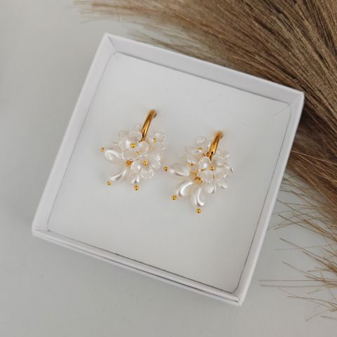 Uudet Ruska designs korvakorut. Rengas on halkaisijalta n.16mm ja koruosat ovat ruostumatonta terästä. Helmi on akryylihelmi.