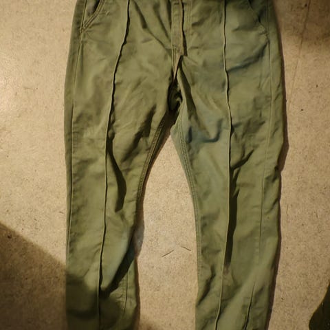 Ajlak collegehousut, chinomalliset, koko L, väri vaaleanpunainen. Housuissa taskut (takana yksi tasku). Vyötäröllä kuminauha sekä kiristysnyöri, mitta venyttämättä 45 cm (x2) ja venyy n. 10 cm. Housut käyttämättömät! Postitus onnistuu!