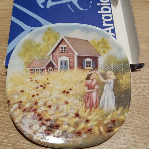 Taitelija Anita Rantanen-Siewers suunnittelema Tytöt kedolla seinälautanen.