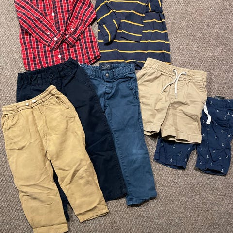 Shortsihaalareita ja t-paitoja koossa 98. Merkkeinä mm. Polarn o pyret, Newbie, Diesel, Lindex, Puma. Kissatalous. Yhteensä 5 €