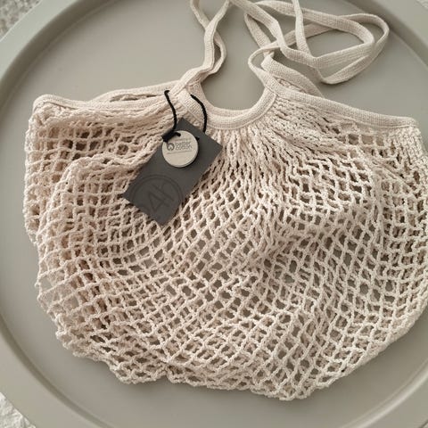 Myydään beige Vacay Mode verkko-/rantakassi.