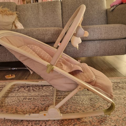 Musta Emma Rocker sitteri. Yhdellä lapsella ollut käytössä, pesty hajusteettomalla. Lukittuu eri asentoihin (makuulleen ja usempi istumavaihtoehto), voi keinuttaa tai asettaa yhteen asentoon.