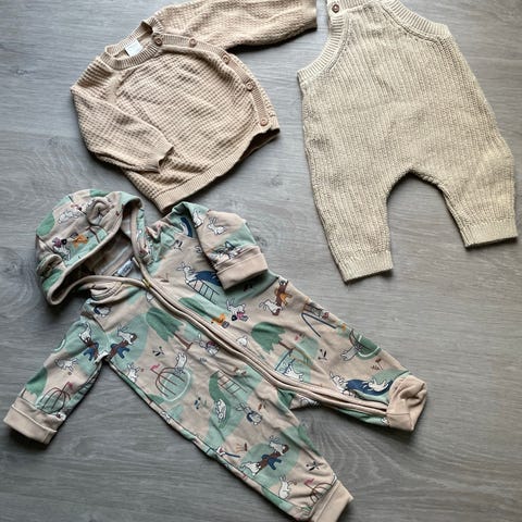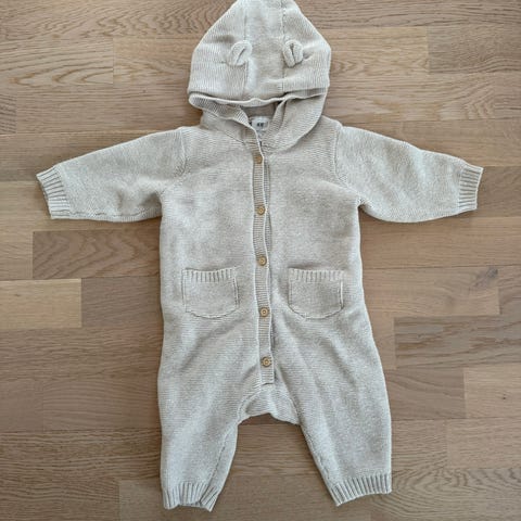 Ihanalla Nalle kuviolla pehmeä neulehaalari, jossa napitus haaroissa vaipan vaihtoa helpottamassa, että sukat ns valmiina, joten ei tarvitse niitäkään joka paikasta etsiä. Kevyt ja hengittävä. Yläselässä pienet nalle napit, joita tosin ei aina saanut kiinni, ei haitannut menoa eikä näkynytkään päälle päin auki olemista. Kauttaaltaan oikeastaan tarkasti katsoen aivan pientä nukkaantumista, näkyy vain todella läheltä katsottaessa. Kuivuu nopeasti.