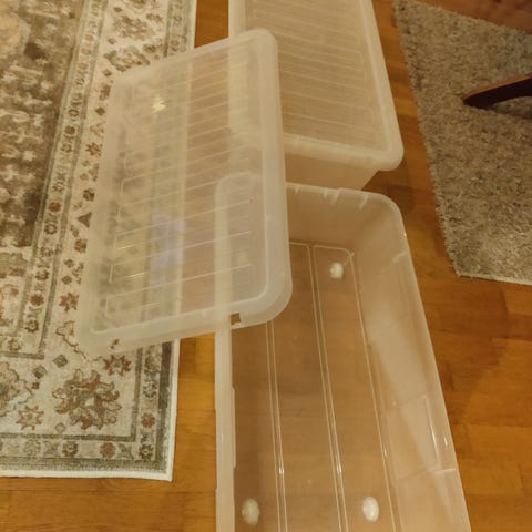 Kannellisia uudenveroisia säilytyslaatikoita 5 kpl:n setti. 3 kpl pyöreitä (Ikeassa ei enää myynnissä), mitat: Iso pyöreä halk.29cm ja kork.15cm, keskikok.pyöreä halk.21cm ja kork.12cm, pieni pyöreä halk.15 ja kork.9cm. Sitten neliskanttisten mitat: Iso 38x29x15cm ja pieni neliö 29x21x15cm. Myydään mielellään settinä (mutta voit myös tarjota) ja hinta on siis kaikki yhteensä. Väriltään harmaita, päällinen kudottua paperia ja sisältä ruutukuvioitu. Laatikot tällä hetkellä Nummelassa, mutta kulkeutuu välillä Konala-Nummela minun kyydissä.