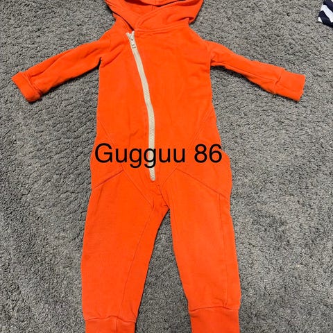 Hyväkuntoinen Gugguu jumpsuit collegehaalari. Koko 86, väri vaaleanpunainen. Oikeassa lahkeessa tahra.