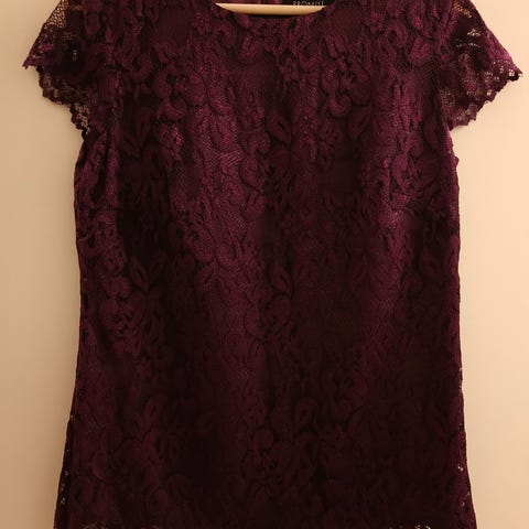 Kaunis, viininpunainen Promisen pitsipusero, jossa hihoissa ei vuoria. Kuten mitoista huomaa, koko on lähempänä 36/38:aa, tarkista! Takana 40 cm vetoketju.