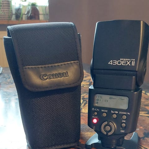 Kuin uusi Canonin lisäsalama, ilman jalustaa. Pussukka mukaan. Voin lähettää, vastaanottaja maksaa pm:n