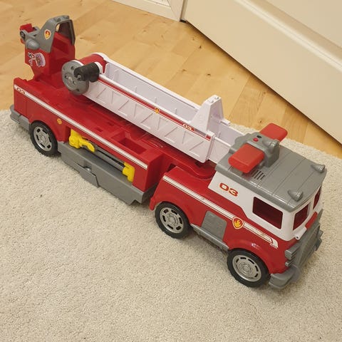 Ryhmä Hau Samppa ja ajokki pakkauksessaan. Sampalla liikkuu pää, paloautossa nousee tikkaat ylös-alas. Ovh 24,95e. RyhmäHau figuuri Samppa Marshall fire truck