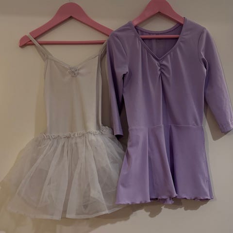 Myynnissä KappAhl- merkkinen kaunis voimistelupuku hameen kera.
