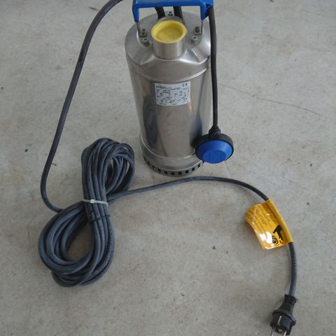 Italialainen uppopumppu. Harmaitten, likaisten vesien siirtoon ja tyhjennykseen. Ruostumaton terästä. Putki mukaan.