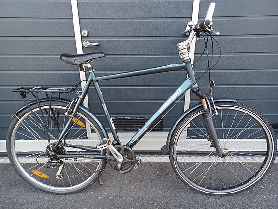 Hyväkuntoinen, huollettu 21-vaihteinen hybridi. Alumiinirunko. Joustokeula. Jarrut kahvoissa. Säädettävä ohjainkannatin. Jousitettu satulatolppa. Hyvät ulkokumit (28"). Runkokoko 51 cm (sopiva yli 170 cm pituisille).