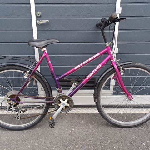 Täysin toimiva 21-vaihteinen miesten vaihdepyörä. Jarrut kahvoissa. Runkolukko, johon 1 avain. Renkaat 26". Runkokoko 51 cm (sopiva yli 165 cm pituisille).