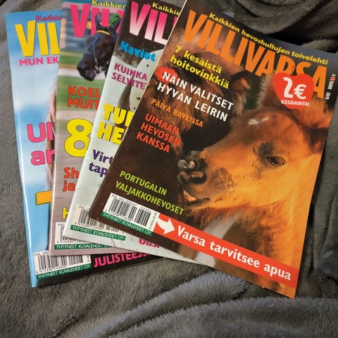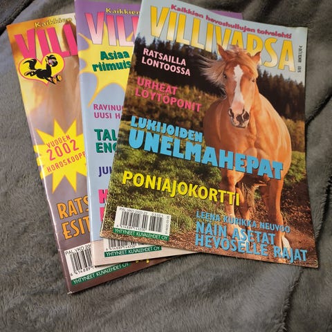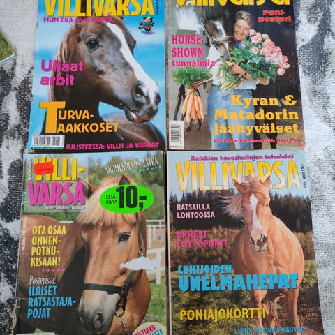 Villivarsa lehdet sisältävät erilaisia hevosaiheisia artikkeleita ja osassa julisteet mukana.