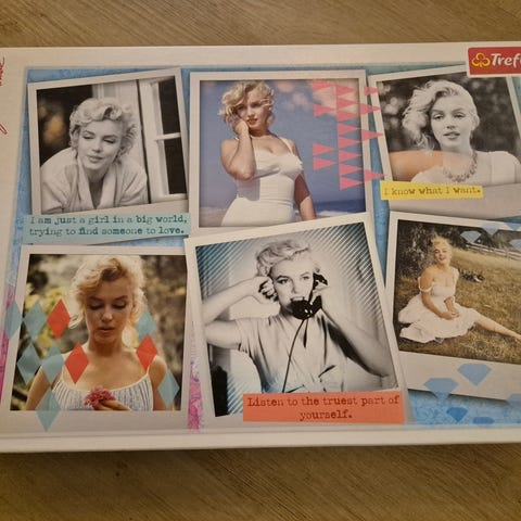 Trefi. Marilyn Monroe -aiheinen palapeli, jossa on 500 palaa. Palapelin koko on noin 62 x 23.7 cm valmiina.