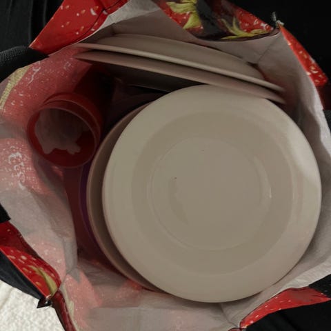 Yksi ruokalautanen, yksi keitto lautanen, kolme pullalautasta ja yksi halk. 18cm matala lautanen