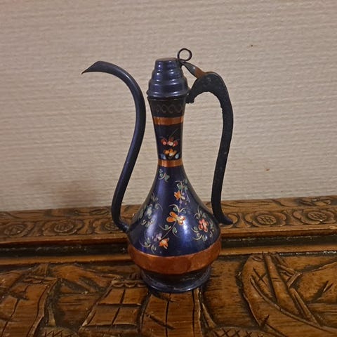 Myydään kuvan keraaminen maljakko / kannu. Kork. 16 ja pohjan halk 12. Pohjassa huopalaput. Hinta 10 eur