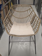 Kaksi tuolia, joissa on rottinkinen istuinosa ja metallijalat. Sopivat hyvin sekä terassille että sisätiloihin. Vain vähän käytetty, hyvässä kunnossa.