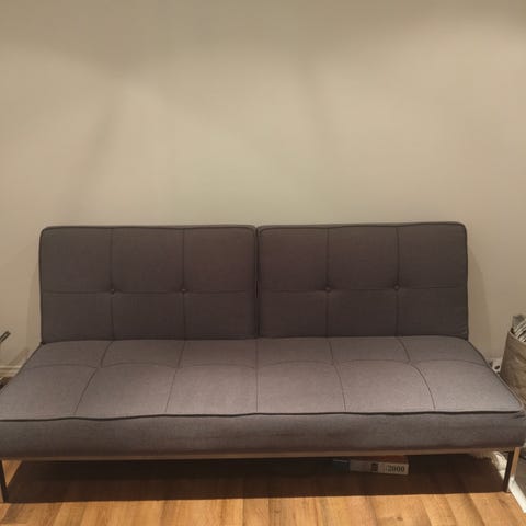 Myydään Ikean vuodesohva, johon mukana kolme harmaata tyynyä (kuva 3-).