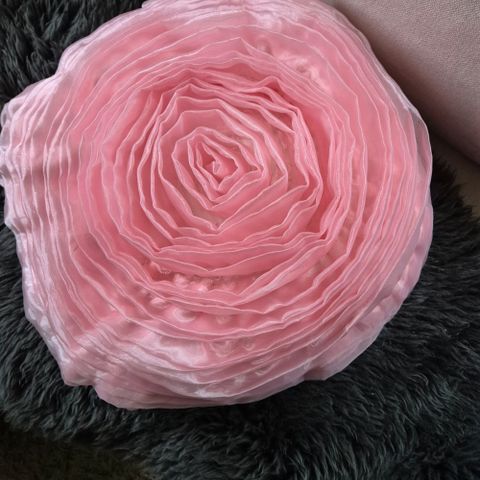 Pyöreä juuttityyny, toinen puoli musta ja toinen valkoinen kuvio. Halkaisija noin 37cm