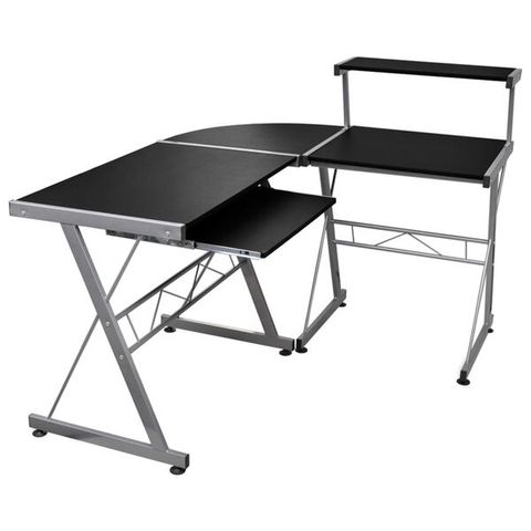Iso puinen työpöytä, jossa keskellä syvennys tietokoneelle. Muotoilunsa ansiosta sopii erinomaisesti huoneen kulmaan sijoitettavaksi. Keskuspöydän molemmille puolille saa kiinnitettyä kaksi erillistä sivupöytää. Sopii hyvin toimistopöydäksi tai pelipöydäksi. Jos ei halua tai ole tilaa käyttää molempia sivupöytiä, voi käyttää halutessaan vain pelkkää keskuspöytää tai sen kanssa vain toista sivupöytää, kuten kuvissa. Molempien sivupöytien kanssa jopa 3 henkilöä mahtuu samanaikaisesti työskentelemään pöydän ääressä ja jokaisella on runsaasti työtilaa. Sekä keskuspöytä että molemmat sivupöydät kuuluvat pakettiin.