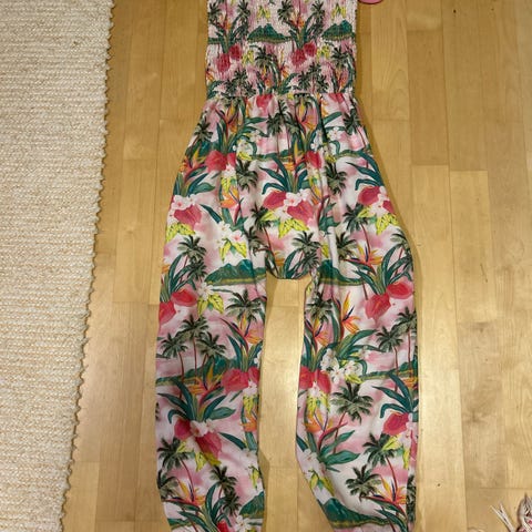 Myydään ihana mutta meillä ehkä kerran pääsi tämä haalari käyttöön. Koko on arviolta 140-152 about noin. Ylhäällä kuminauharypytys alaosa rento housut.