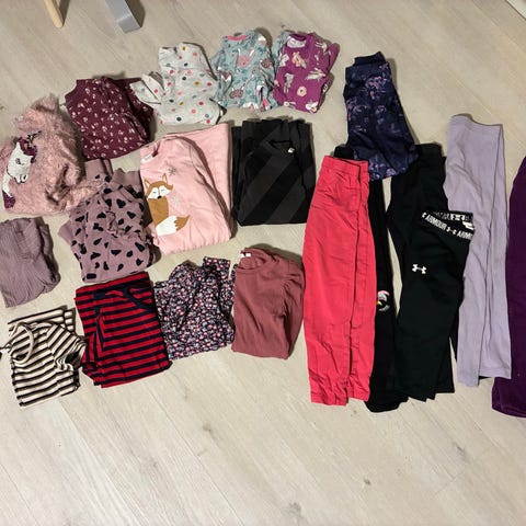 116/122 vaatesetti. Parissa vaatteessa pieni ikitahra. Ehjiä, puhtaita ja pesty hajusteettomalla pesuaineella.