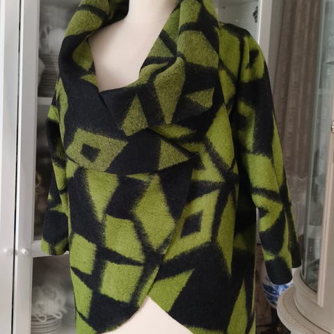 Musta villatakki kauniilla koristeilla.
