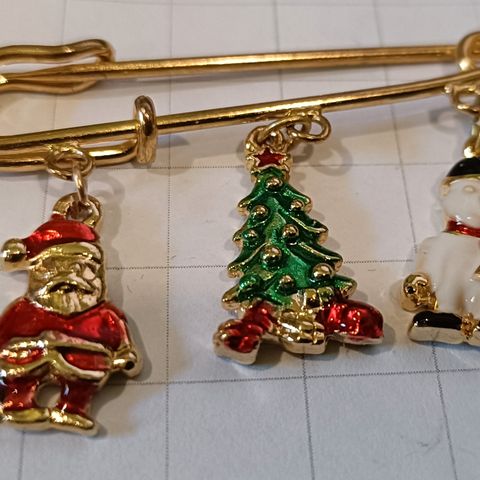 Jouluaiheiset rintaneulat. Ehjät, siistit, kerran-pari olleet käytössä. Ei kotieläimiä eikä tupakkaa taloudessa. Nouto Vaasan keskustasta käteismaksulla. Yhteishinta molemmille koruille.