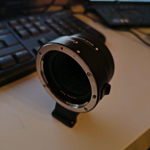 URTH EF-EOS R linssiadapteri, joka mahdollistaa Canon EF -objektiivien käytön Canon EOS R -sarjan peilittömien kameroiden kanssa. Adapteri on valmistettu kestävästä materiaalista ja sopii valokuvaajille, jotka haluavat laajentaa objektiivivalikoimaansa. The URTH EF-EOS R lens adapter allows you to use Canon EF lenses with Canon EOS R mirrorless cameras. Made of durable material, the adapter is suitable for photographers who want to expand their lens options. Brand new, never used. Its retail price is 59, and I'm selling it for 50.