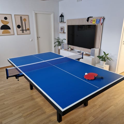 Stiga pingispöytäsetti sisältää mustan pingispöydän, kaksi puista mailaa punaisella ja mustalla kumipinnalla, sekä sinisen verkon. Setti soveltuu pöytätenniksen pelaamiseen sisätiloissa.