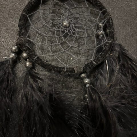 Jätti unisieppari. Ympyrän halkaisija noin 77cm. Pituus ylhäältä alas hapsuihin n. 135cm. Hyvässä kunnossa, ollut vain seinällä ja kaapissa säilytyksessä. Materiaali varmaan jotain puuvillalankaa?