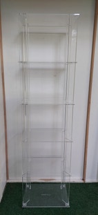 Myydään kätevä 184cm korkea pyörien päällä oleva akryylistä tehty Colomer -merkkinen näyttelyhyllykkö. Hylly on koottava ja koostuu kestävistä akryylilevyosista, joten hylly on helppo pystyttää ja purkaa😊🙌🏽 Hylly on alunperin ollut kampaamossa, ja siinä on ollut esillä kampaamossa käytettäviä ja myytäviä tuotteita. Tuote sopii einomaisesti esittelyhyllyköksi, sen lisäksi hyllyihin mahtuu täydellisesti vinyylilevyt, joten ne sopivat esim. Kotiin tai varastolle hyvin vinyylien säilytykseen. Sen lisäksi kokonaisuus liikkuu pyörillä, joten sitä on helppo liikutella :)