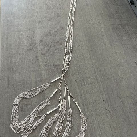 Uusi kultainen (ei aitoa kultaa) kaulakoru. Kaksinkertainen ketju, toisessa lantteja, laattoja tms