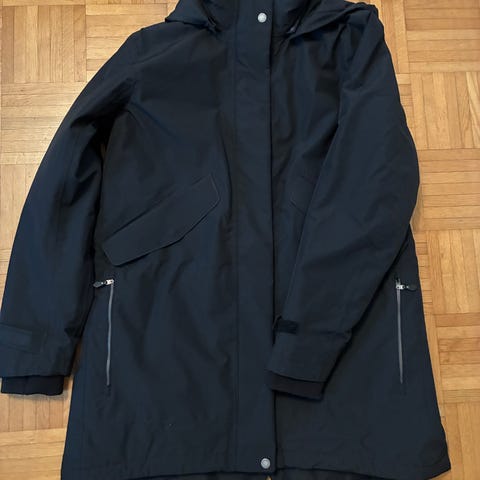Didriksons Talvitakki naisten talvitakki mustassa värissä, koko 46. Takki on suunniteltu tarjoamaan lämpöä ja suojaa kylmiltä säiltä. Sopii käytettäväksi arki- ja ulkoiluvaatteena kylminä vuodenaikoina.