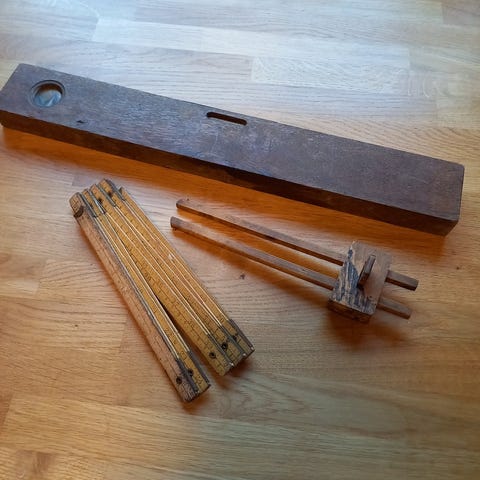 Vanhan mallinen työntömitta, antiikki. Vanhat mitta-asteikot myös näkyvissä.
