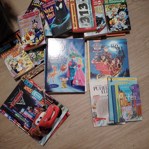 Lasten kirjapaketti joka sisältää 9 kirjaa. Paketissa 3 Disneyn kirjaa (1kpl Autot-kirjoja, 1kpl Aku Ankka ja 1kpl Lentsikat), loput muita. Kirjat ovat ehjiä ja siistikuntoisia, toki jotain käytönjälkiä niissä näkyy. Myydään settinä edullisesti.