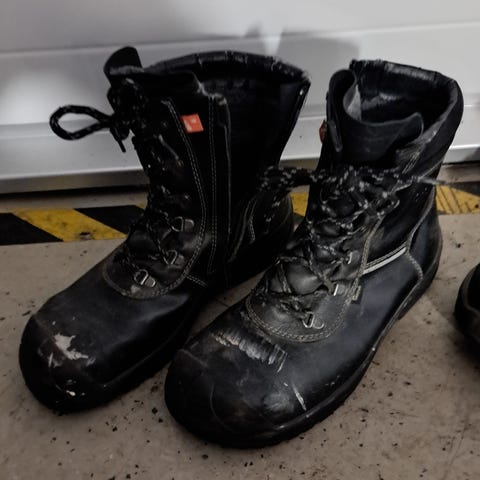 Kestävät turvajalkineet, joissa on komposiittinen varvassuoja ja teräksinen naulasuoja.