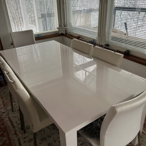 Tukeva ruokapöytä. Maalattu vaaleansiniseksi. Pinnassa pieni maalipuute (kuva). Nouto ja käteismaksu.