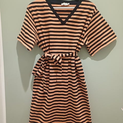 Myydään Marimekon musta Klaara-mekko. Kolmet hautajaiset käyty, muutoin mekko on seissyt kaapissa tarpeettomana. Siisti käytetty kunto. Mekossa on v-mallinen kaulus ja rinnan alla poikkileikkaus, josta helma lähtee kevyesti levenemään. Vajaamittaiset suorat hihat. Mekko on vuorittamaton. Kangas on paksuhko, hieman joustava puuvillasekoitekangas, materiaali 78% puuvillaa ja 22% polyamidia, käsinpesu. Käy vallan hyvin talviseen arkikäyttöön.