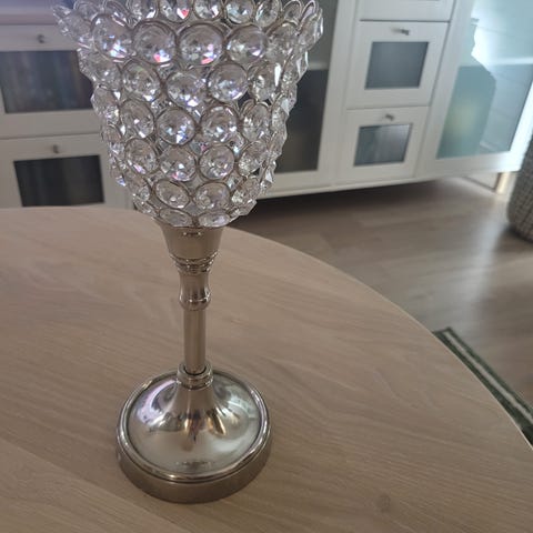 Kynttilänjalka, jossa on kaksi kynttilänpidikettä. Väriltään violetti ja kultainen, valmistettu keraamisesta materiaalista. Sopii koristeeksi ja käytettäväksi kynttilöiden kanssa.