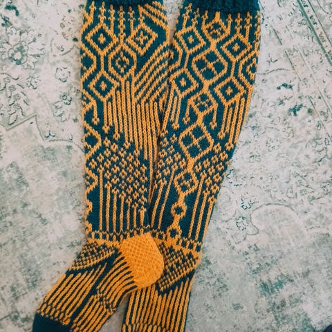 Myydään ihanat syksyn väreissä olevat villasukat. Sukissa vahvennettu kantapää, lankana ollut 7veikka.
