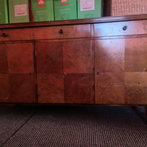 Kokopuinen, tukeva, pois remontin alta, syv. 60cm, lev.170cm, kork.98cm, kaapeissa hyllyt