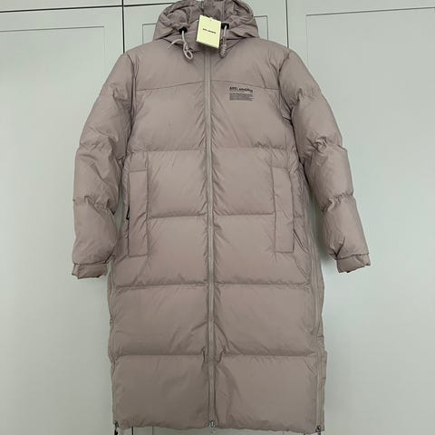 Todella hyvässä kunnossa oleva ankan untuvatakki kokoa s. Huppu on pesularhun turkista. Sisäpuolella kaksi pientä tahraa.