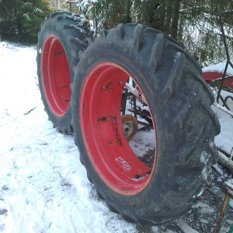 Traktori, Peräkärri, vanne, 5-pulttinen halkaisia 45cm, keskireikä 10cm, kuvissa mittoja.