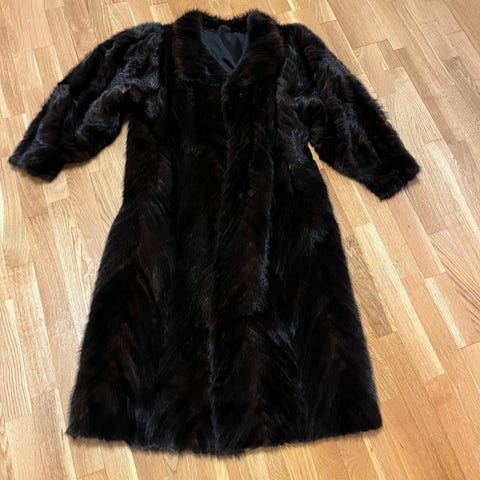 MINKKITURKKI / Minkinpala koko n. 36. Tumm.ruskea. Yksinkertaisen kaunis . Käytetty hyväkuntoinen Kaulus kokominkkiä. , ei kulumaa . Valmistaja Angelika Turkis ( Koru kuuluu mukaan. pun mekko ei kuulu mukaan) ka-ka noin 45 cm, pit 106 cm, hihan sisäsauman pituus 40 cm